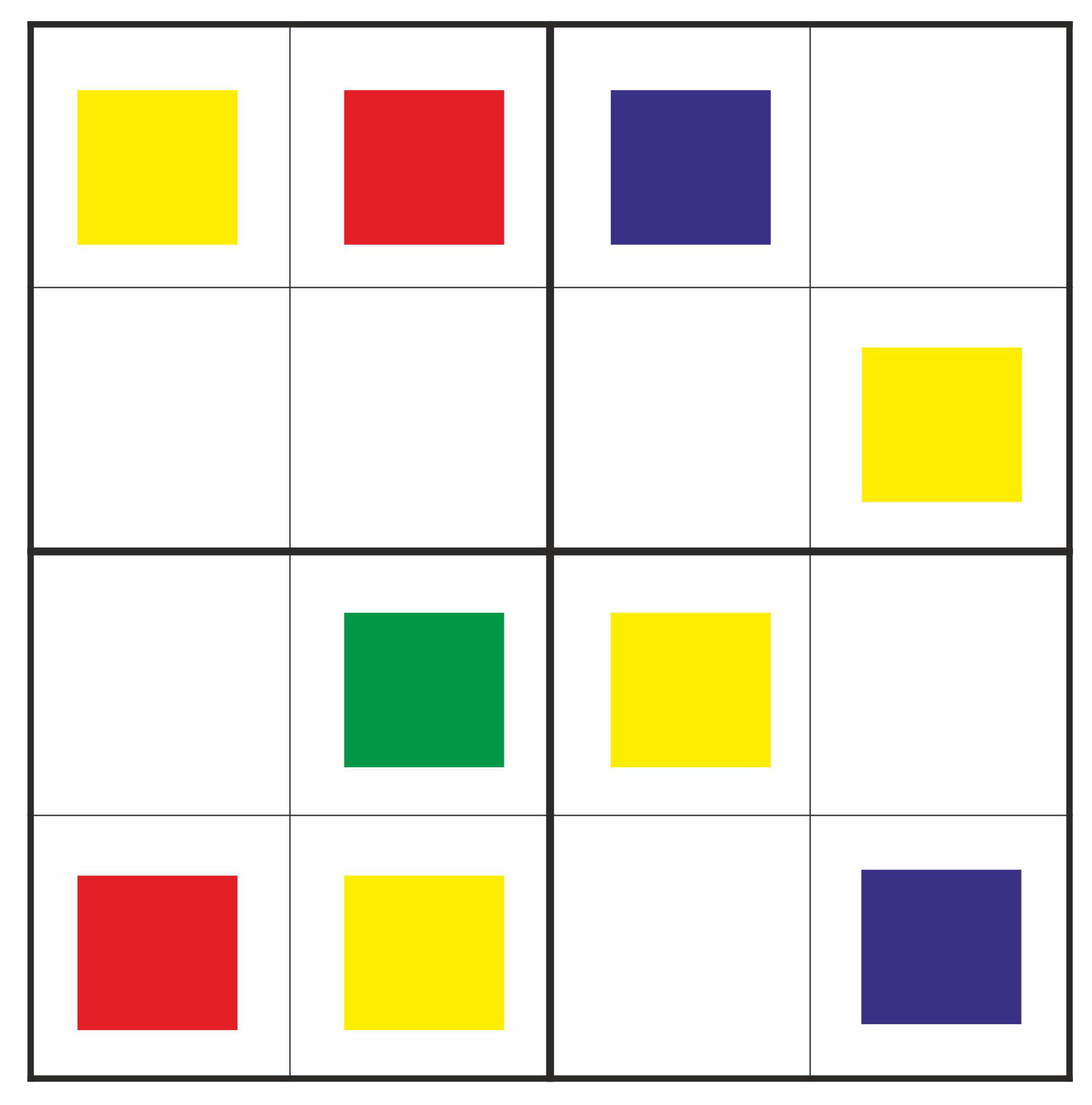 цветное судокуПособие состоит из 14 листов и содержит материал для развития логического мышления. 5+Скачать пример 10 руб Количество: 1 В корзину Custom wishlist OKДобавить в список пожеланийСообщить другуПособие состоит из 14 листов и содержит материал для развития логического мышления.поставьте в свободных клеточках квадратики определенного цвета. Цвета в строках и столбцах не должны повторятся.Ключевые слова раскраска (27), 5+ (12)